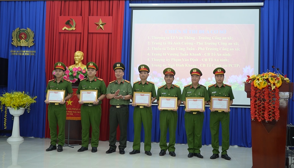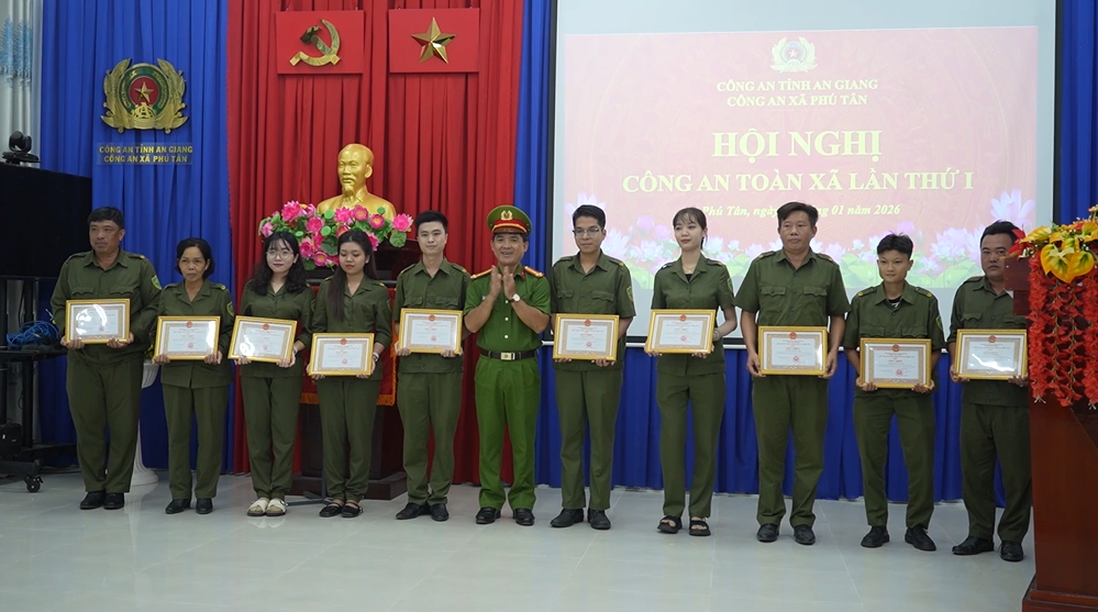 Dịp này, Công an tỉnh An Giang và UBND xã Phú Tân đã khen thưởng cho các tập thể và cá nhân có thành tích tiêu biểu trong công tác đảm bảo an ninh trật tự năm 2025./.