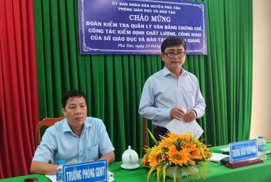 Sở Giáo dục và Đào tạo An Giang kiểm tra quản lý văn bằng chứng chỉ, công tác kiểm định chất lượng, công khai tại Phú Tân