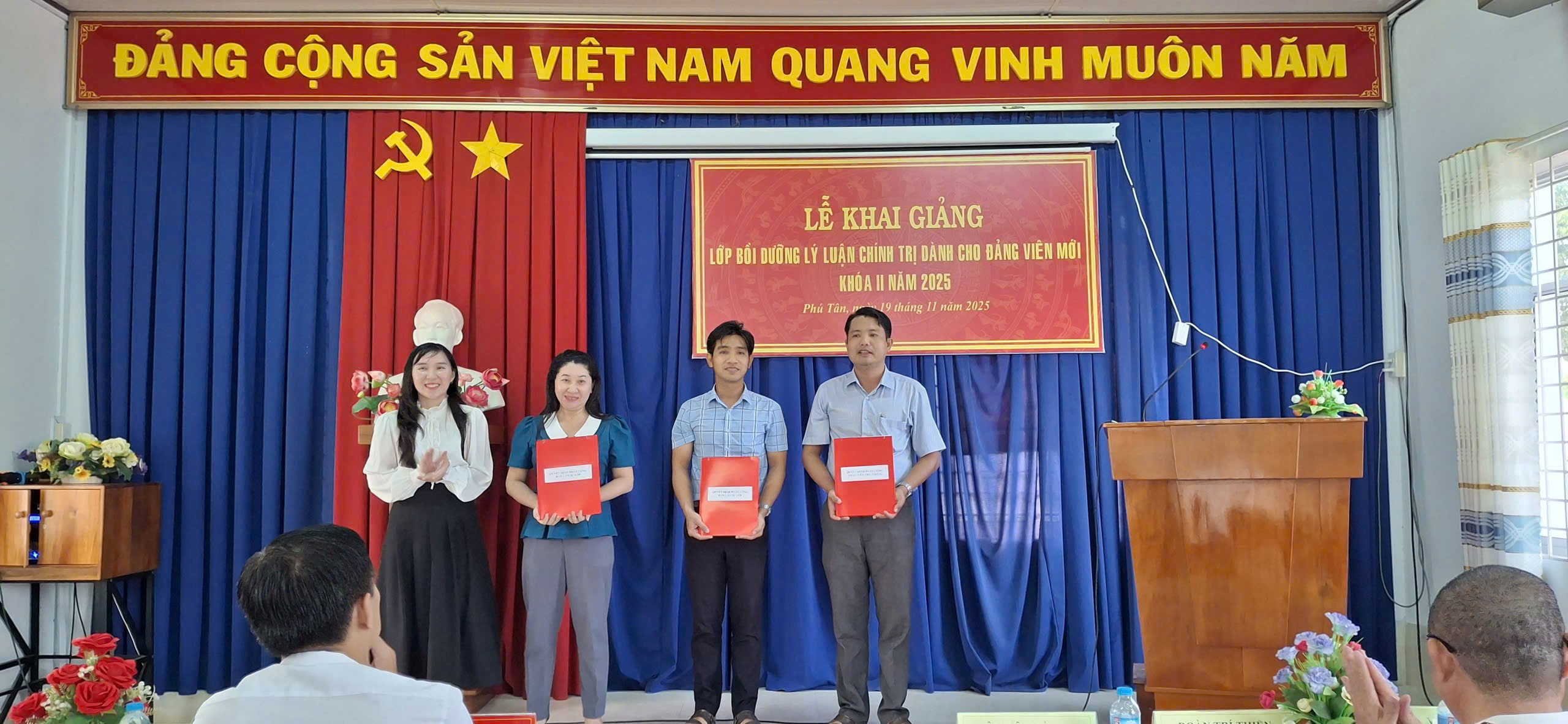 Sáng ngày 19/11, Trung tâm Chính trị xã Phú Tân tổ chức Lễ khai giảng lớp bồi dưỡng lý luận chính trị dành cho đảng viên mới và chuyên đề Hội nhập quốc tế, khóa II năm 2025, cho 44 học viên của các xã Phú Tân, Chợ Vàm, Phú An, Phú Lâm, Hòa Lạc và xã Bình Thạnh Đông.