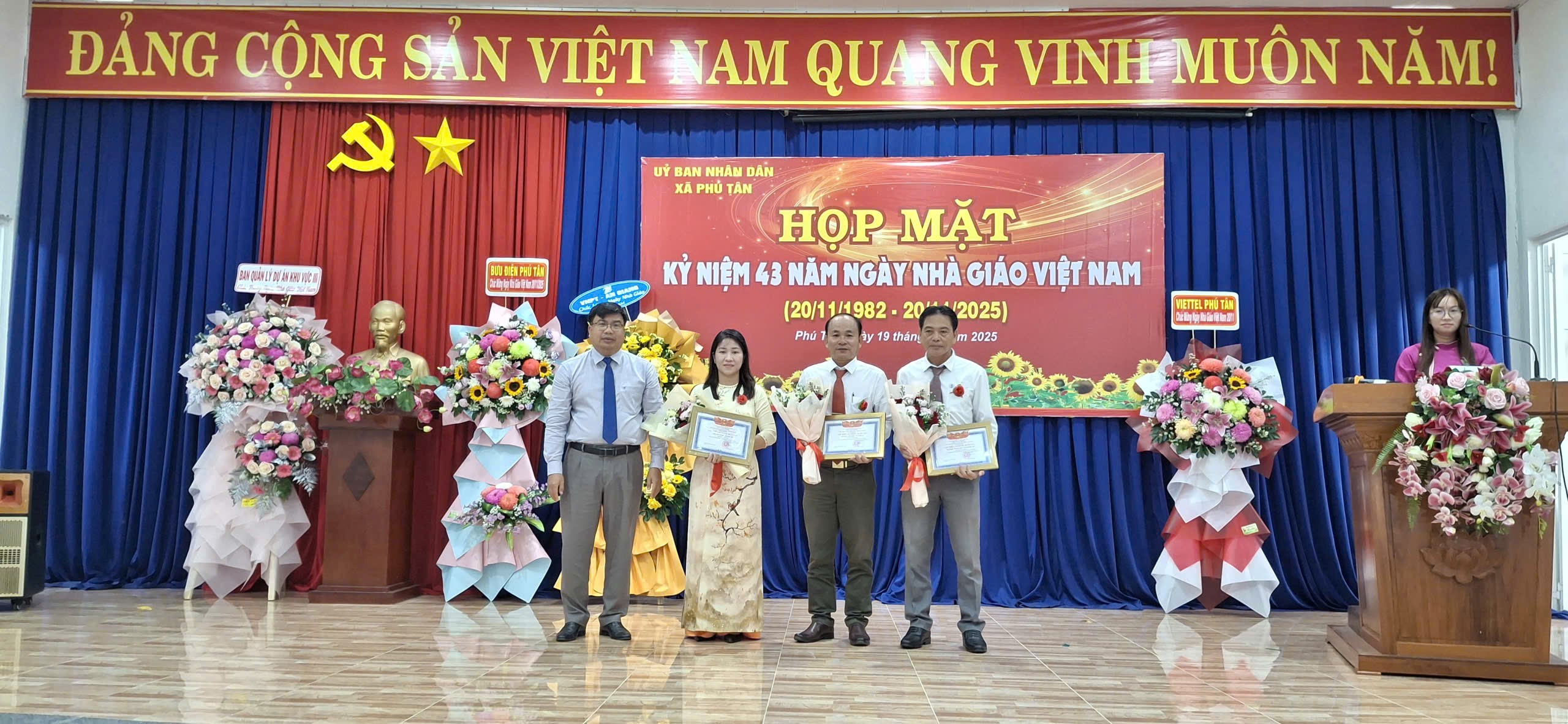 Sáng ngày 19/11, UBND xã Phú Tân tổ chức buổi họp mặt kỷ niệm 43 năm Ngày Nhà giáo Việt Nam (20/11/1982 – 20/11/2025), nhằm phát huy truyền thống “Tôn sư trọng đạo”, tri ân những đóng góp của đội ngũ thầy giáo, cô giáo đối với sự nghiệp phát triển giáo dục địa phương.