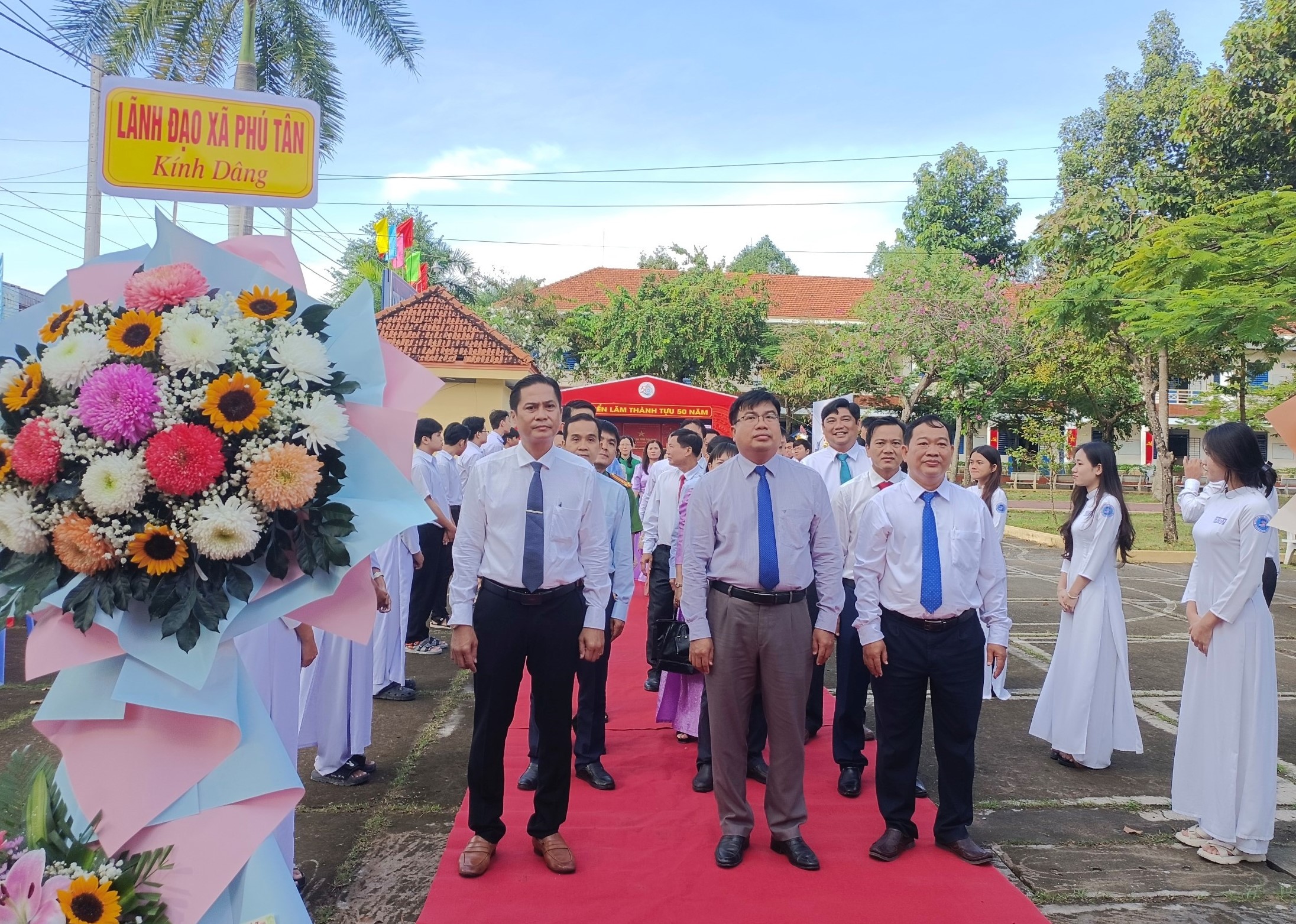 Đoàn lãnh đạo địa phương và hiệu trưởng các trường đến dâng hoa tại Niệm sư từ