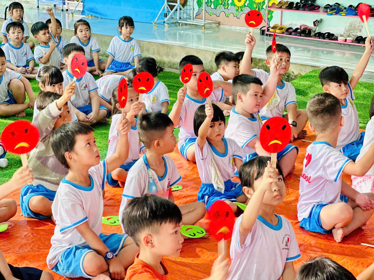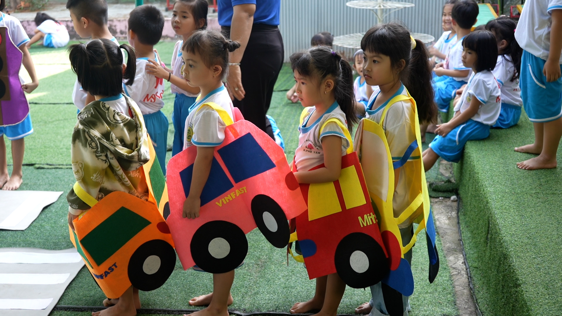 Tại chương trình, các em học sinh các lớp được tham gia nhiều hoạt động sôi nổi như: giao lưu trả lời câu hỏi về an toàn giao thông, nhận biết một số biển báo giao thông đơn giản và tham gia các trò chơi, tiểu phẩm tình huống phù hợp với lứa tuổi mầm non. Các hoạt động được tổ chức sinh động, gần gũi, tạo không khí vui tươi, phấn khởi.