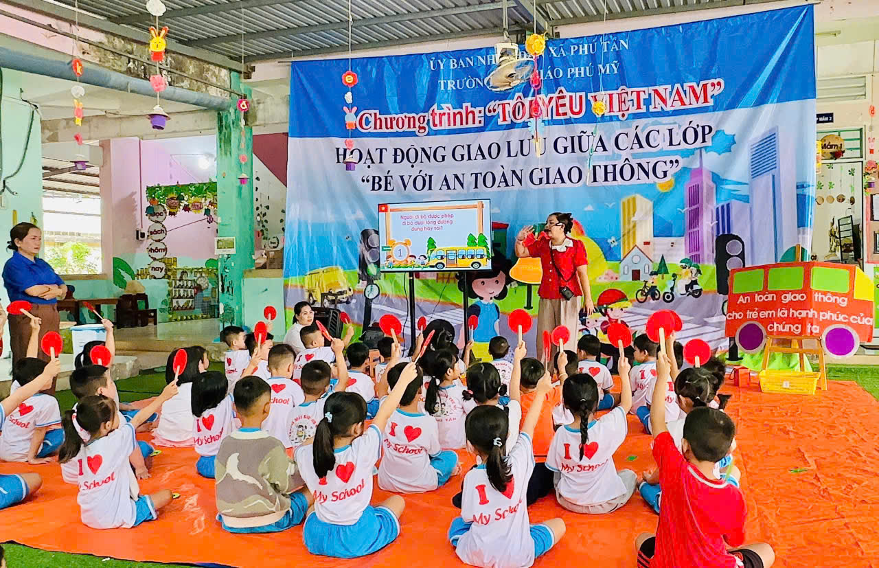 Sáng ngày 31/12, Trường Mẫu giáo Phú Mỹ đã tổ chức chương trình “Tôi yêu Việt Nam”, kết hợp các hoạt động giao lưu giữa các lớp “Bé với an toàn giao thông”, thu hút sự tham gia của cán bộ, giáo viên và các em học sinh toàn trường.