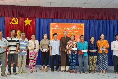 Đoàn Từ thiện chùa Long Khánh thăm, tặng quà gia đình bị ảnh hưởng giông, lốc xảy ra trên địa bàn huyện Phú Tân