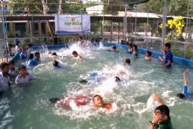 Phú Tân đầu tư 14 hồ bơi di động trong trường học