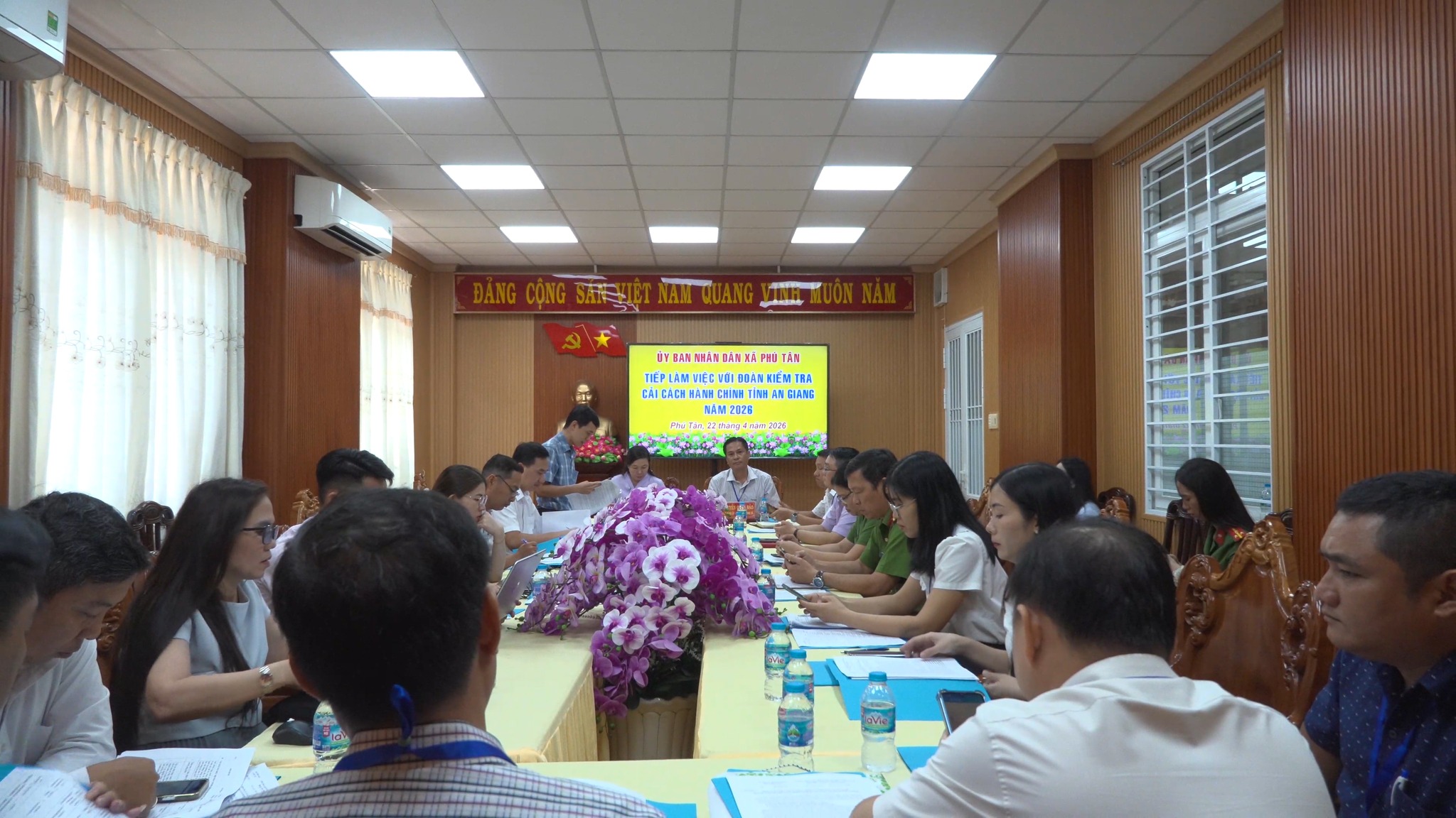 Sáng ngày 22/4, Đoàn Kiểm tra Cải cách hành chính tỉnh do bà Nguyễn Thị Bảo Trân - Phó Giám đốc Sở Nội vụ, Phó Trưởng đoàn kiểm tra Cải cách hành chính tỉnh làm trưởng đoàn đã đến làm việc và tiến hành kiểm tra thực tế tại UBND xã Phú Tân. Tiếp và làm việc với đoàn có ông Nguyễn Quốc Bảo, Chủ tịch UBND xã Phú Tân, cùng đại diện lãnh đạo, chuyên viên, viên chức phụ trách lĩnh vực cải cách hành chính của xã.