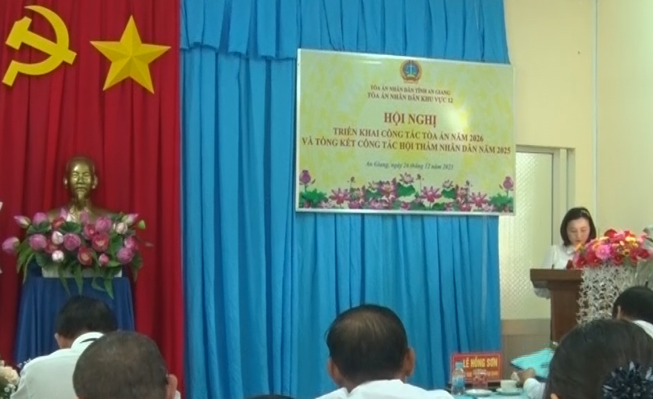 Chiều ngày 26/12, Tòa án nhân dân khu vực 12 đã tổ chức Hội nghị tổng kết công tác năm 2025 và triển khai nhiệm vụ công tác năm 2026. Đến tham dự có đ/c Lê Lâm Sơn – Phó Chánh án TAND tỉnh An Giang.