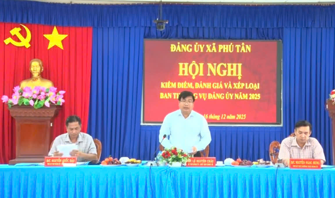 Sáng ngày 16/12, Ban Thường vụ Đảng ủy xã Phú Tân tổ chức Hội nghị kiểm điểm tập thể, cá nhân Ban Thường vụ Đảng ủy năm 2025.