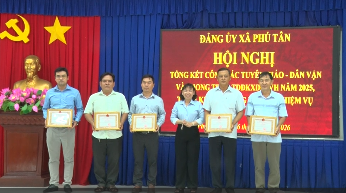 Chiều ngày 16/01, Đảng ủy xã Phú Tân tổ chức Hội nghị tổng kết công tác Tuyên giáo – Dân vận của Đảng ủy xã và phong trào thi đua “Toàn dân đoàn kết xây dựng đời sống văn hóa” năm 2025; triển khai phương hướng, nhiệm vụ năm 2026.