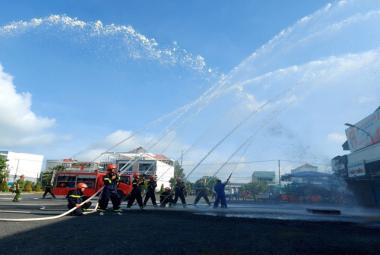 Thực tập phương án chữa cháy và cứu nạn cứu hộ tại Trung tâm Thương mại Phú Mỹ